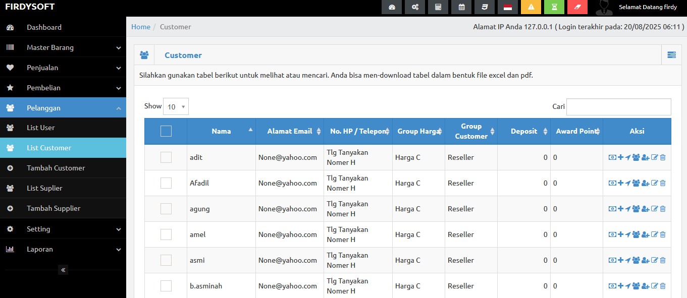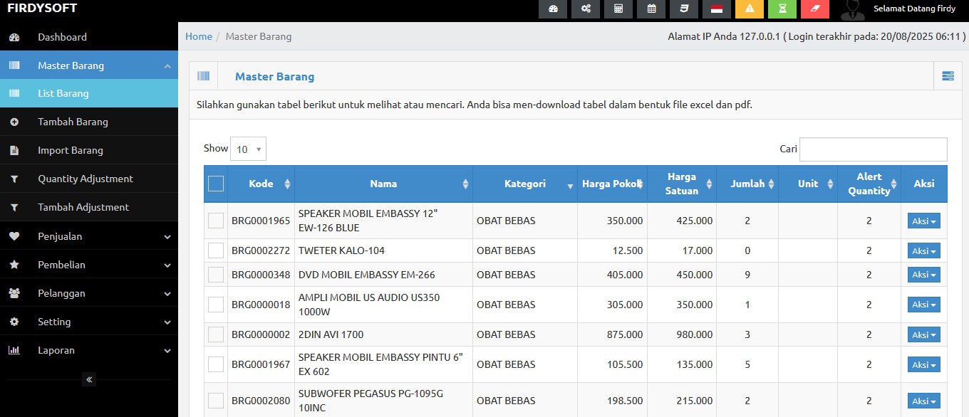 - Update stok otomatis setiap transaksi.
