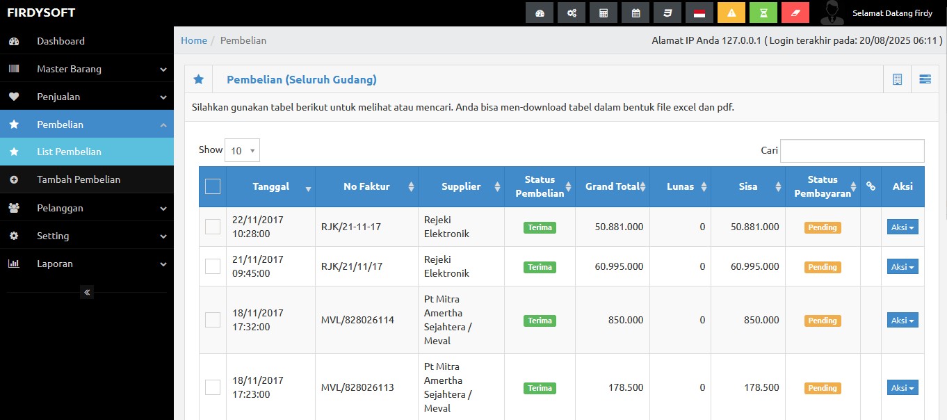 🤝 Manajemen Supplier & Pembelian