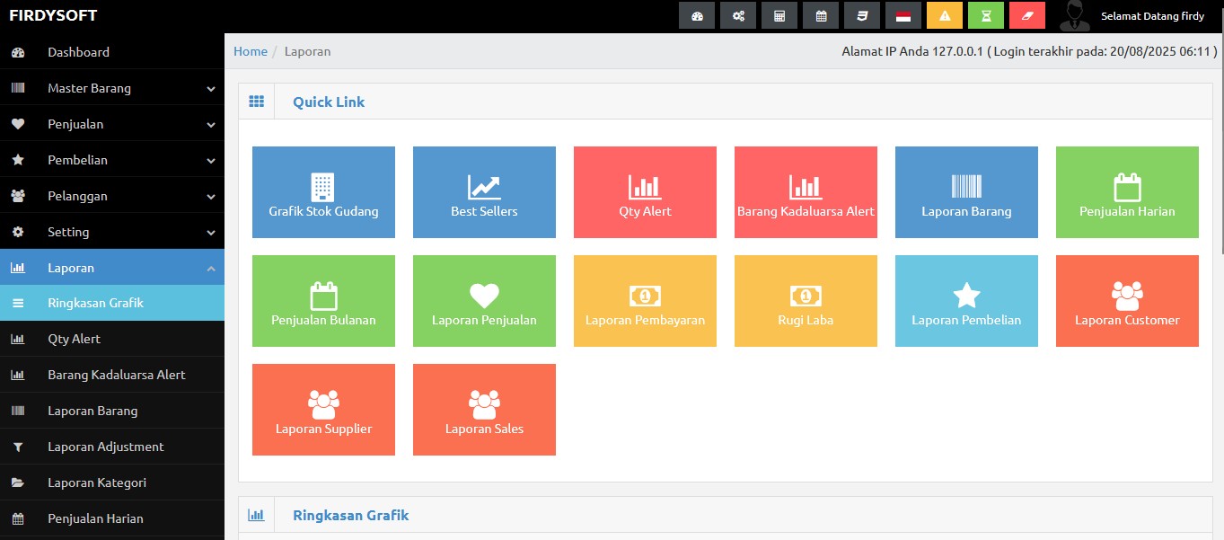- Notifikasi stok menipis & produk habis.